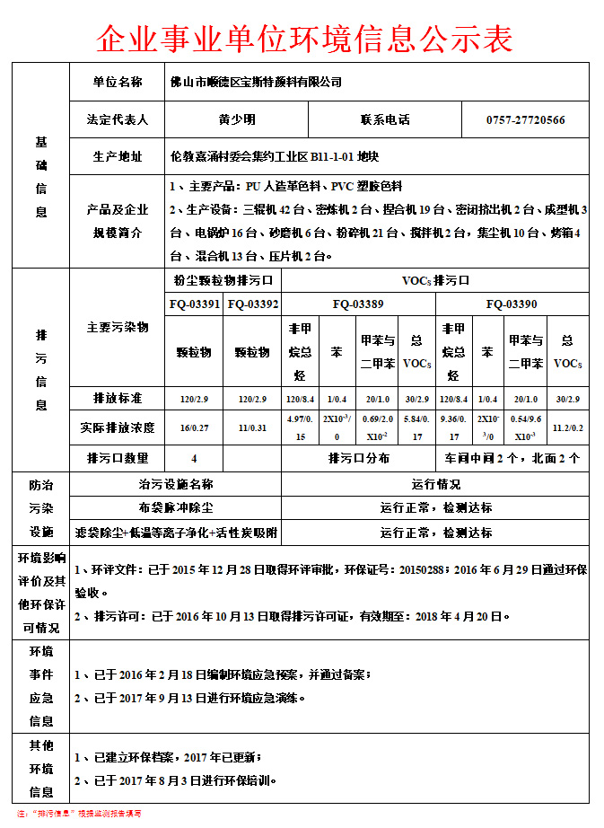 企業(yè)事業(yè)單位環(huán)境信息公示表